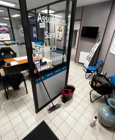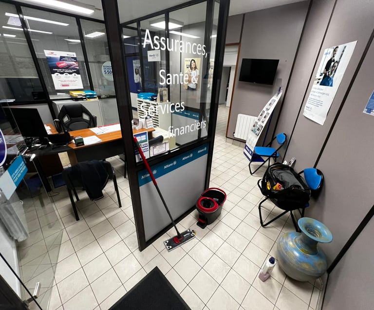 Intervention de nettoyage hebdomadaire dans une agence d’assurance à Saint-Quentin (02100) : entretien des bureaux, sanitaires, sols et surfaces de contact.